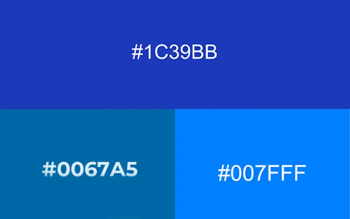 - آبی لاجوردی میانه: ترکیبی از رنگ آبی و مشکی (#۰۰۶۷A5).