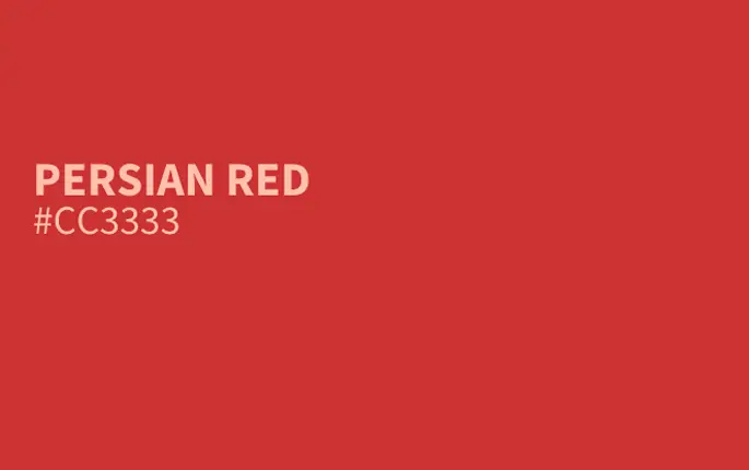 یکی دیگر از رنگهای اصیل ایرانی قرمز ایرانی است، رنگیست زنده و گرم با تهرنگ کمی نارنجی. این رنگ از خاک قرمز منطقه هرمز در ایران الهام گرفته شده و به همین دلیل رنگی منحصربهفرد و مهم در فرهنگ ایرانی به شمار میرود. قرمز ایرانی با انرژی، شور و نشاط مرتبط است و اغلب برای نماد زندگی، قدرت و شجاعت استفاده میشود. این رنگ در سال ۱۸۹۷ میلادی ثبت شد. در فرشهای دستبافت ایرانی، این قرمز به کار میرود و با کد رنگ (#CC3333) شناخته میشود.